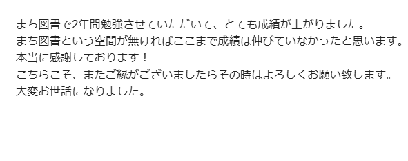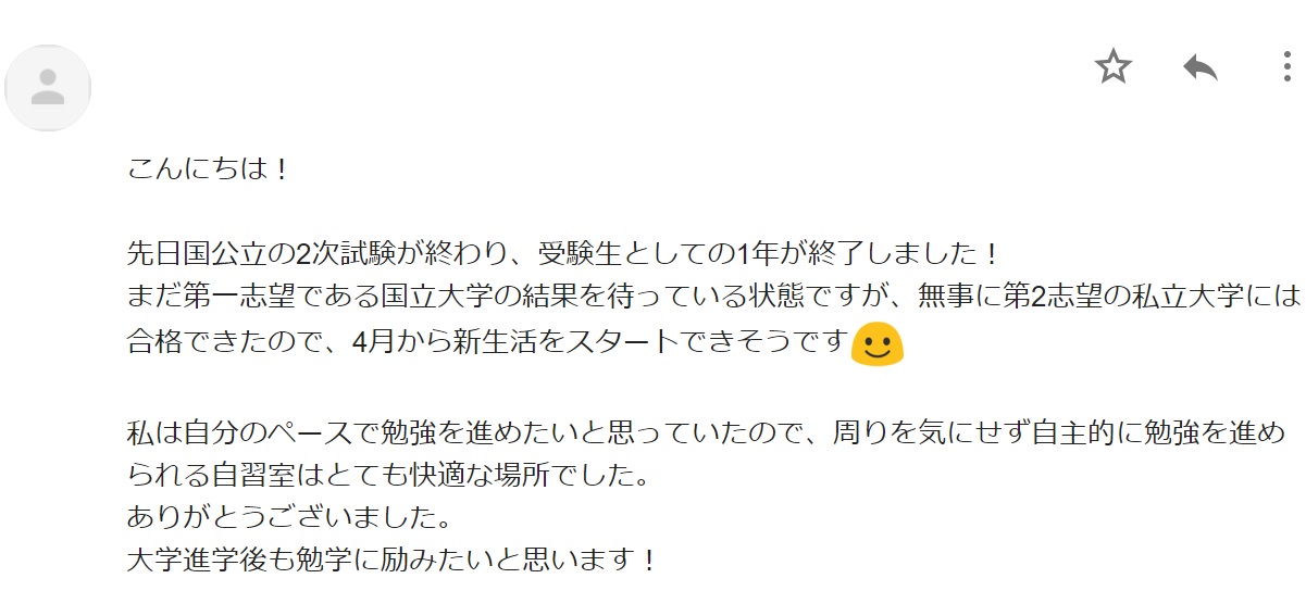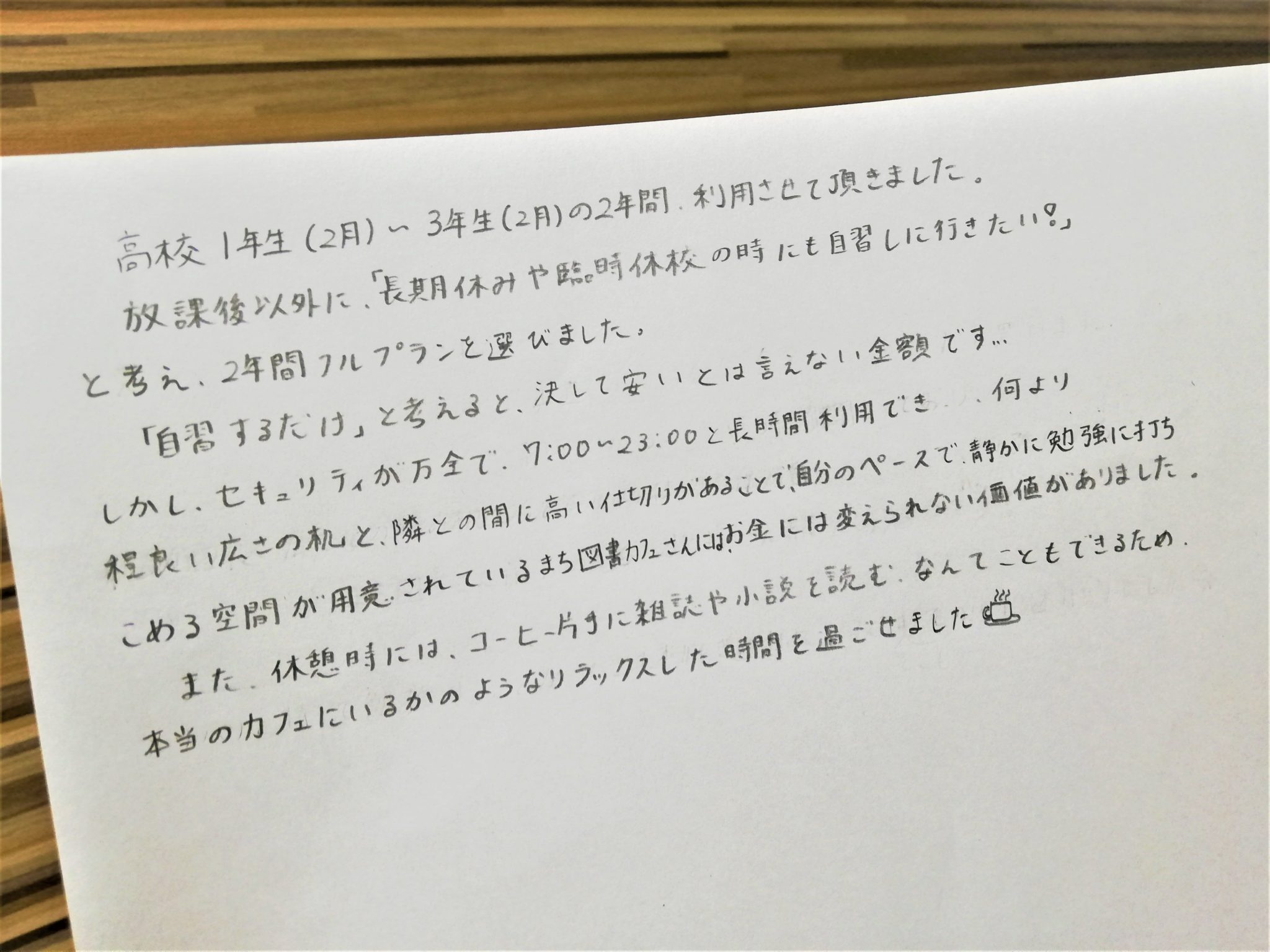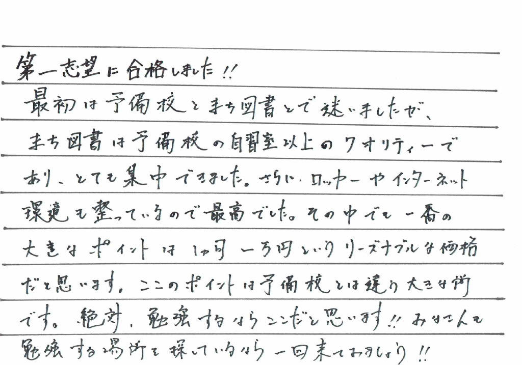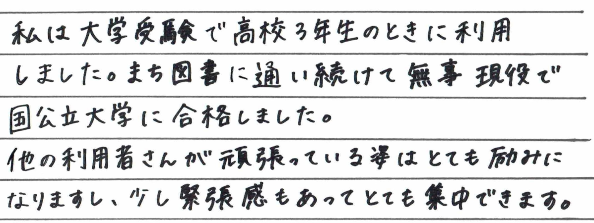現役高校生はもちろん、浪人生の方も多く勉強に励んでいらっしゃいます!
