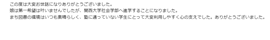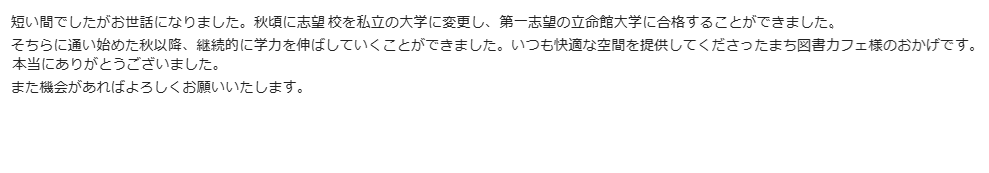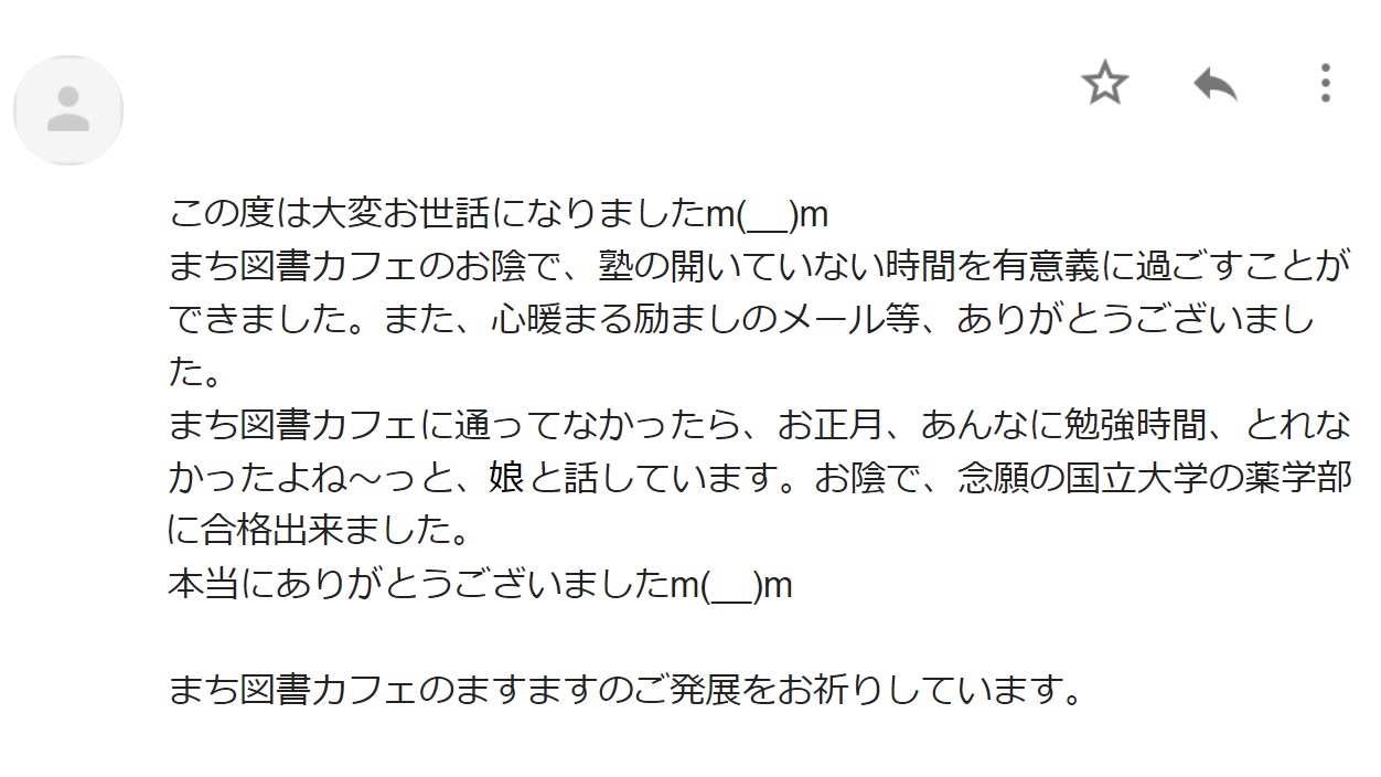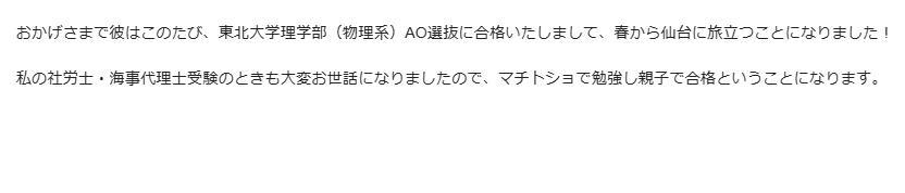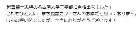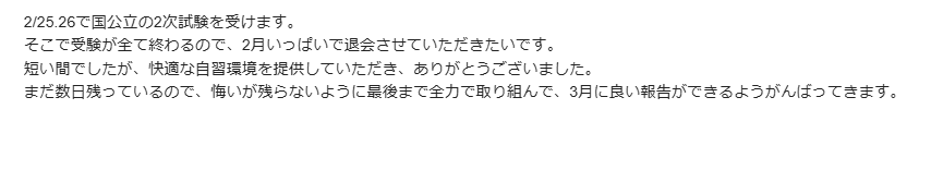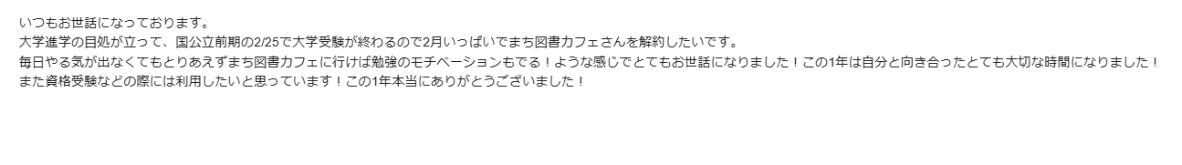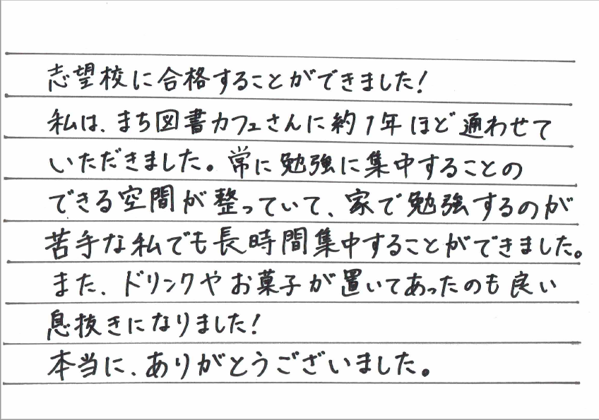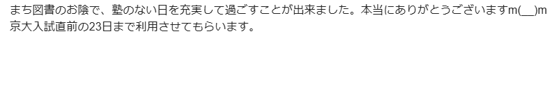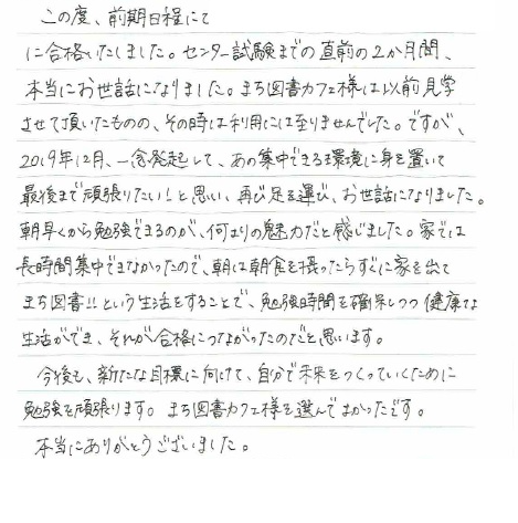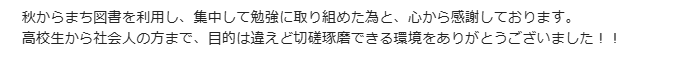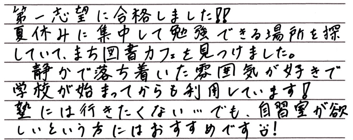 現役高校生はもちろん、浪人生の方も多く勉強に励んでいらっしゃいます!