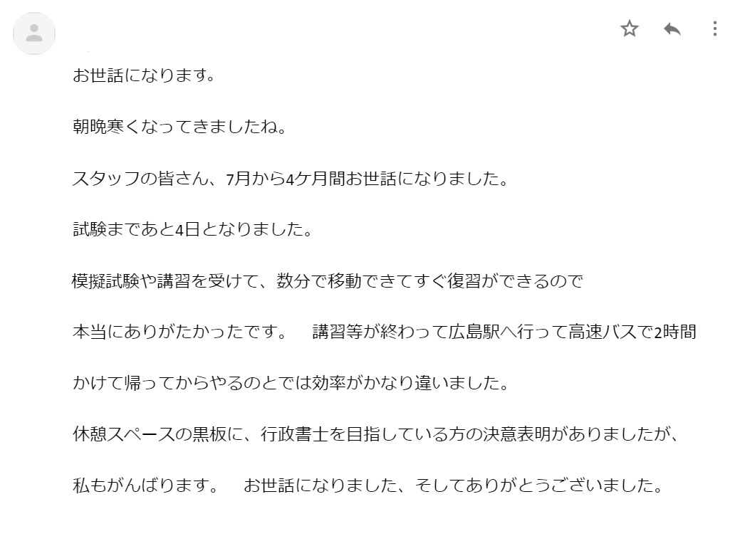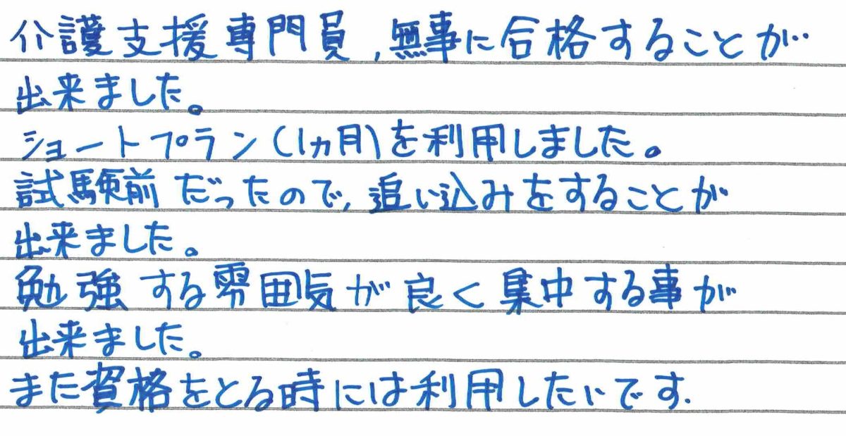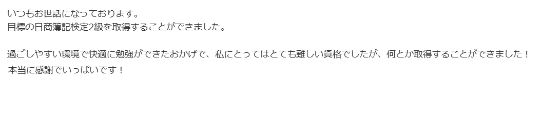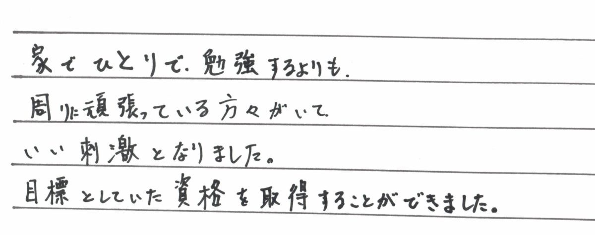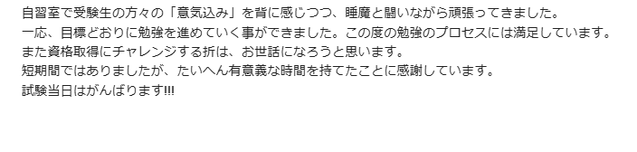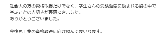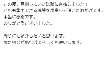 集中してお勉強ができたとのことで何よりです☆彡 合格おめでとうございます!!
