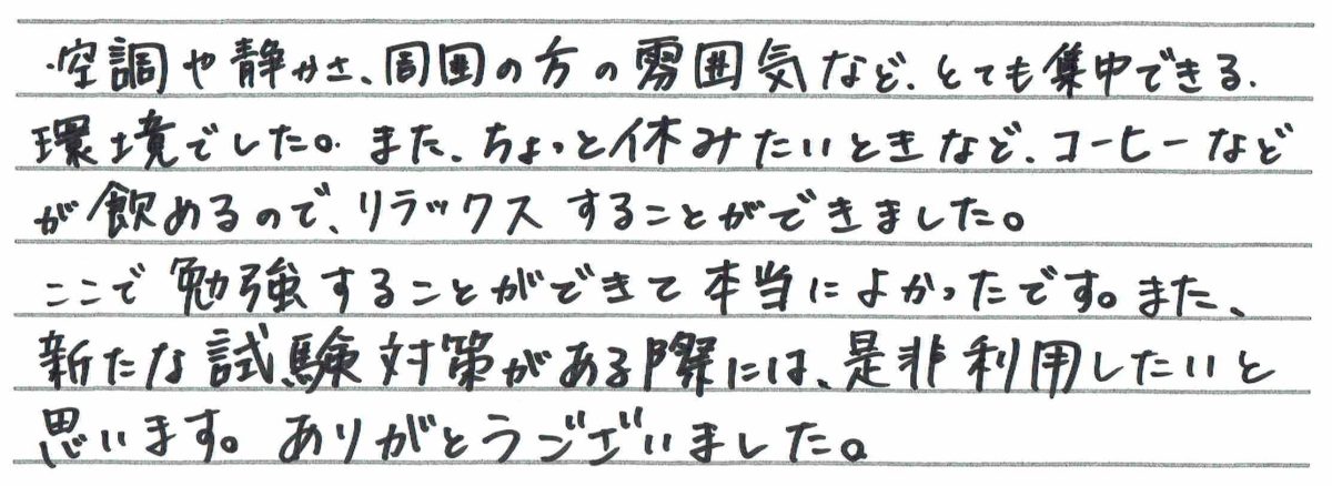 試験お疲れさまでした! 「集中して勉強できる環境」これからも提供していきます✨