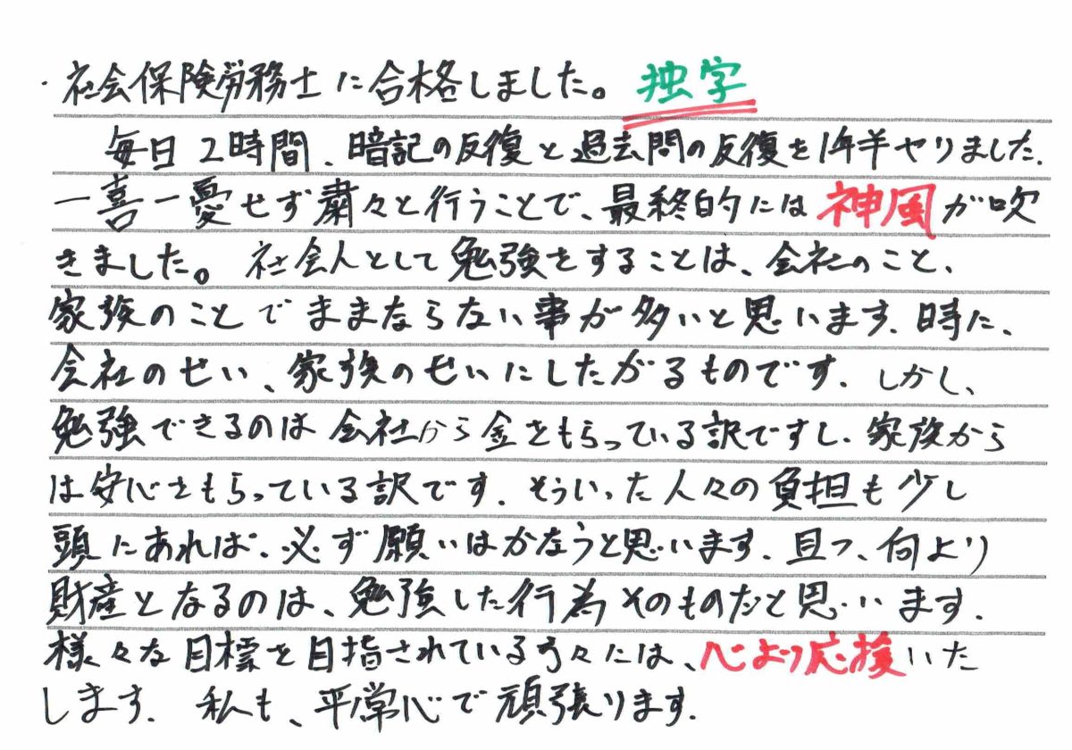 社労士合格おめでとうございます(*^^*) 神風を吹かせたあなたの頑張り、自分を律する気持ち、とってもカッコいいです😎