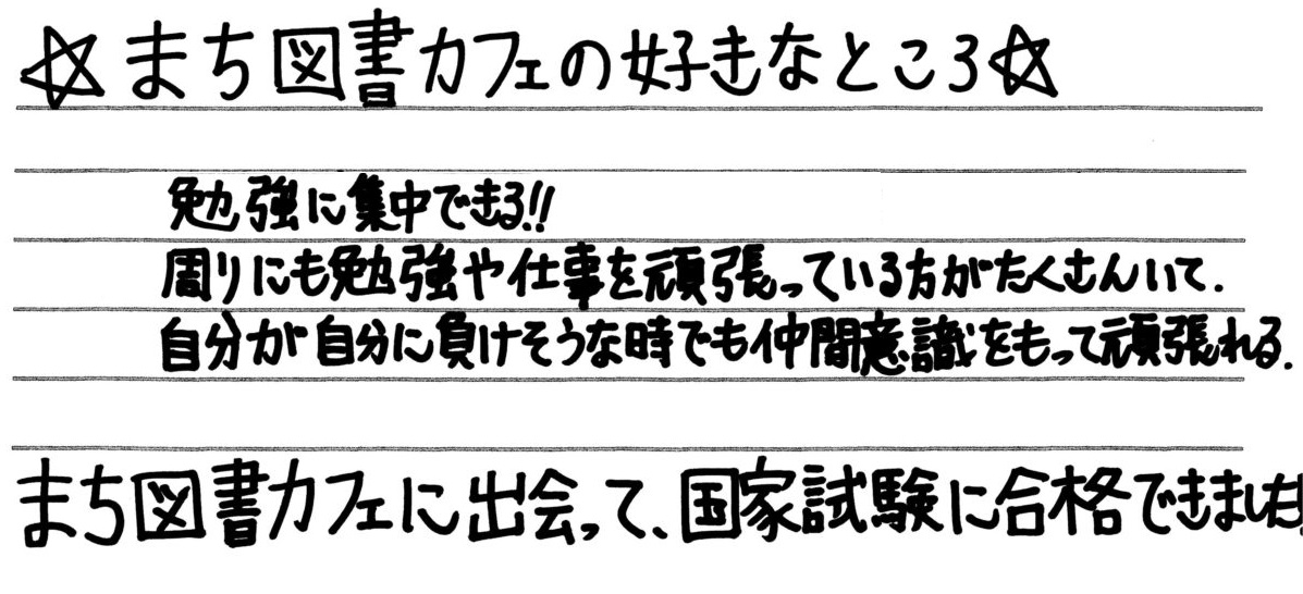 まち図書カフェで頑張る皆は仲間です(*'▽') 仲間の一員になって下さりありがとうございました!そして合格おめでとうございます(*^^*)