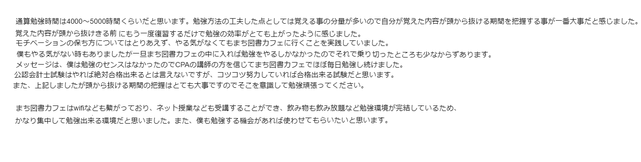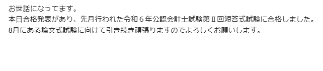 米国公認会計士、おめでとうございます!!! 毎日お勉強お疲れさまでした(*´ω`) こちらこそご利用ありがとうございました✨