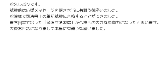 司法書士 筆記試験合格おめでとうございます! 「勉強する習慣」大事ですよね~ 今後の生活にも活かしてくださいね!(^^)!