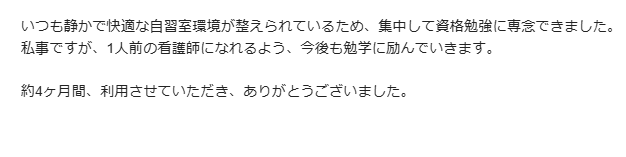 集中してお勉強ができたとのことで何よりです✨ 看護師さんになれていますように!!